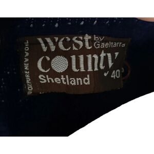West County Shetland by Gaeltarra women’s vintage long sleeve dark blue knit sweater. V-neck, minimal stretch in the material. EU size 40, US conversion would be a large. Mannequin is a US 8 for your reference. Please verify your measurements below.