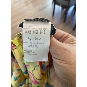 The Vintage Gai Mattiolo Y2K Yellow Floral 100% Silk Midi Dress is a stunning piece perfect for various occasions such as travel, weddings, parties, and business events. The dress features a beautiful yellow floral pattern, a sleeveless design with a round neckline, and a zip closure. Made from luxurious chiffon silk fabric with a tiered accent, this dress exudes a whimsical, tropical, and ethereal vibe, ideal for the summer, fall, and spring seasons. The midi length and tiered design add a touch of romance and fairycore charm to this Italian-made vintage piece from Gai Mattiolo.