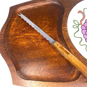 Vintage Gail Craft Quality Woodenware Fruit & Cheese Board w Attached Knife EUC