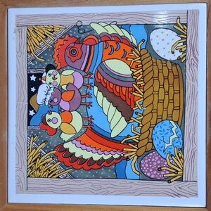 Vintage Gailstyn Sutton set of 4 colorful ceramic folk art mulicolor animals framed tile wall hanging trivets are in good shape w normal vintage wear.