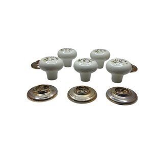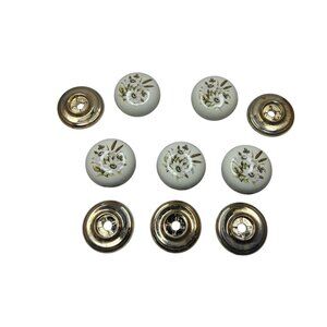 Elevate your furniture with these vintage Gainsborough porcelain drawer knobs featuring a charming daisy motif. Their ivory and gold accents add elegance to any decor, making them perfect for refurbishing dressers or cabinets. Ideal for antique enthusiasts and DIY home decorators.
