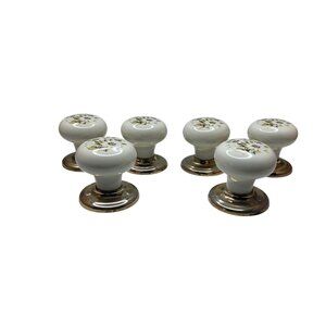 Enhance your home decor with this set of six vintage Gainsborough Australia porcelain drawer knobs. Featuring a charming daisy motif in ivory and gold, these knobs add a touch of elegance and nostalgia to any room. Perfect for cabinets, drawers, or furniture restoration projects. (((No Screws)))