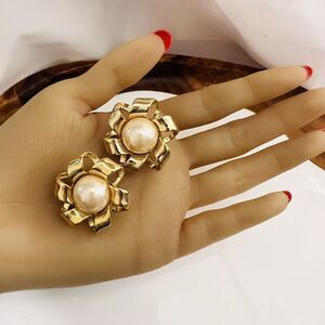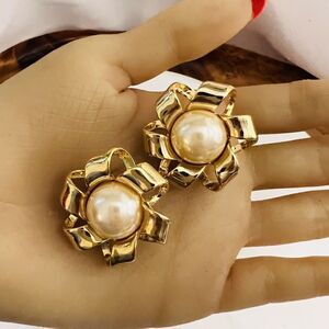 Vintage Galleria Faux Pearl Earrings 3d Abstract Wave Clip On Gold Tone. Very nice preowned Condition without notable flaws or damage. Please preview all Pictures for Condition and/or measurements. If you have any questions please ask prior the purchase. Your Order will be shipped with care.