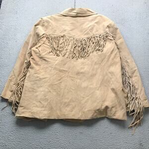 Gallery Woman Western Genuine Leather Fringe Suede Lined Jacket Women's Size 3X Long Sleeve Button Pockets Tasseled Tan Brown