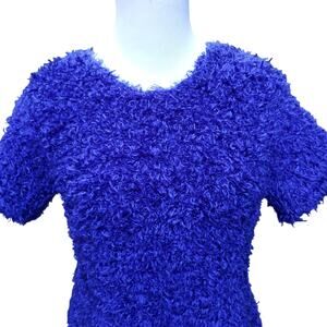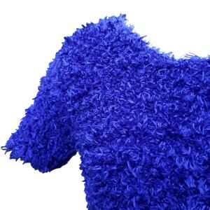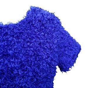 Vintage Gantos Blue Fuzzy Shaggy Short Sleeve Crop Top Sweater Size Medium