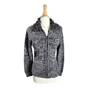 Vintage Gantos Cardigan Sweater L Zip Silk Textured Loop Knit 80's 90's Fringe