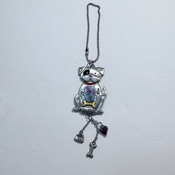 Vintage Ganz Dog Pewter Keychain with Charms Heart Bone Bowl