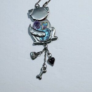• Dangling bone, heart, and bowl charms