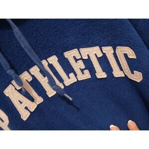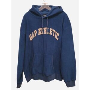 Vintage Gap Athletic Hoodie Mens Large Blue Terry Fleece Pullover Felt Letters