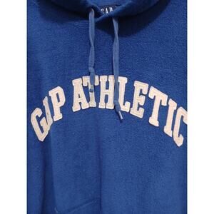 Vintage Gap Athletic Hoodie Mens Size Large Blue Terry Fleece Pullover Felt Letters Spellout Grunge Skater Athleisure Casual