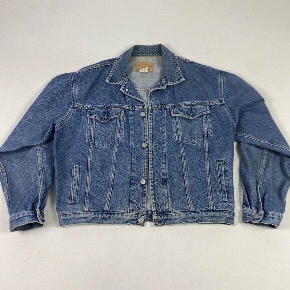 Vintage Gap Denim Jacket Mens Large Blue Trucker Button Front Pockets Washed 90s
