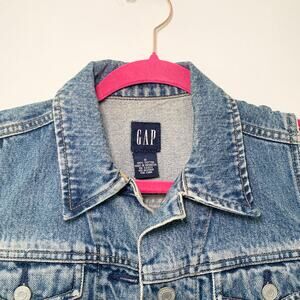 Rock a cool, vintage vibe with this classic Gap denim vest! This vest features a timeless blue wash denim, perfect for layering over your favorite tops.