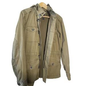 Vintage Gap Factory Men’s Khaki Olive Green Hooded Utility Grunge Boho Jacket, S