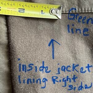 There is ink dot on the right wrist as shown in pictures. There is a lime green mark inside jacket on right side as shown in pictures.