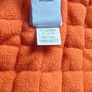 Solid green long sleeve zip hooded coat jacket with orange fleece lining. Faux fur trim hood. Vintage 2002