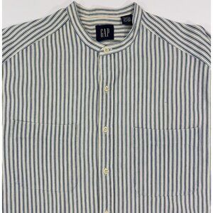 Vintage Gap Mens Shirt Size Large Band Collar Blue Stripe Grandpa Grandfather Railroad 90s
