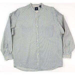 Vintage Gap Mens Shirt Size Large Band Collar Blue Stripe Grandpa Railroad 90s