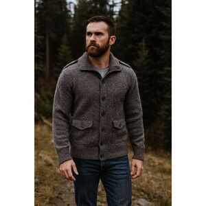 Vintage Gap Mens Wool Military Epaulet Button Front Gray Casual Sweater Jacket L