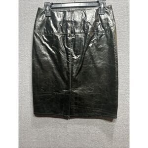 The Vintage Gap 100% Leather Women Skirt is a stylish and versatile piece perfect for a business occasion. Made in the 1990s with black leather, back slit. This original Gap shirt exudes a timeless elegance. The brand, material, and decade all add to its appeal, making it a unique and classic addition to any wardrobe. The shirt is in new with tags condition, offering a fresh and quality piece that can be dressed up or down for any eveningwear look.