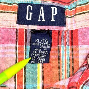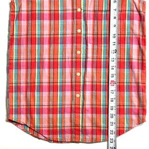Vintage Gap Plaid Sleeveless Button Down Shirt Red Pink Teal Summer Camp Retro