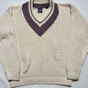 Vintage Gap Preppy V Neck Tennis Cable Knit Sweater Size XL