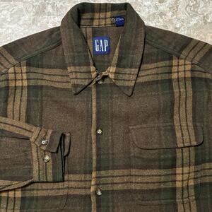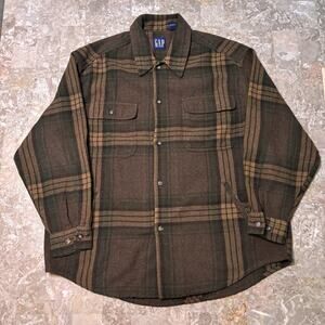 Vintage Gap Shirt Mens Large Brown Plaid Overshirt Wool Blend 90s Board