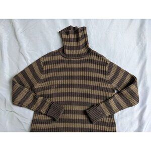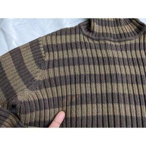 Vintage Gap Sweater Brown Striped 100% Cotton Ribbed Womens Size L
