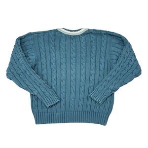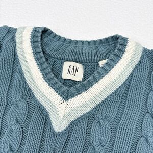 Vintage Gap Sweater Size Medium Blue Cable Knit V Neck Pullover Academic Varsity