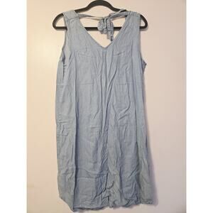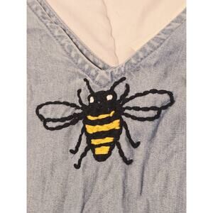 Vintage Gap TENCEL Tie Back Sz M Dress Bee Embroidered Blue Midi Fall Retro Y2K