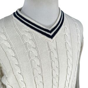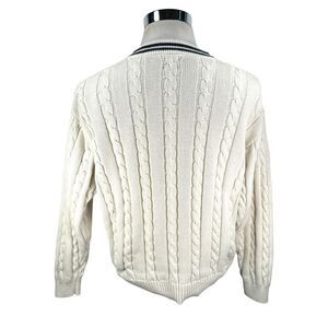 Vintage Gap Tennis Sweater Women’s Large Off White Cable Knitted V-Neck Pullover