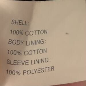 100% cotton, so I don't think that I would wear this in the rain or in a really cold winter environment, like Minnesota.