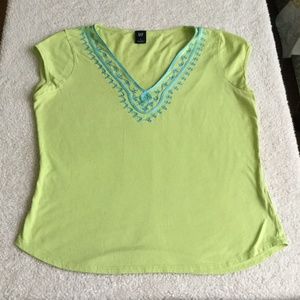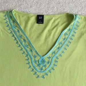 Gap Y2K Lime Green Embroidered Boho Knit Top