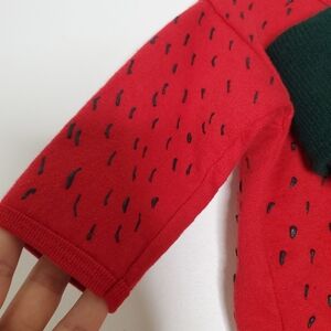 Charming red costume with green leaf accents. Perfect for fun dress-up and parties.