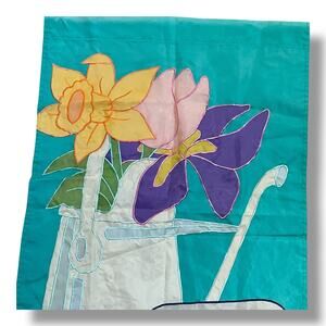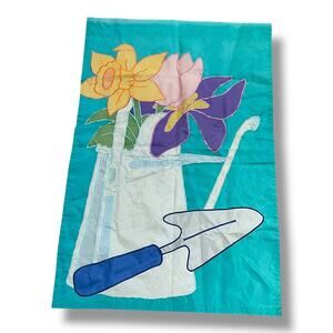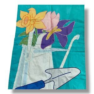 Vintage Embroidered Gardening Flag Spring Flowers Watering Can Trowel Yard Decor~28"W x 42"H