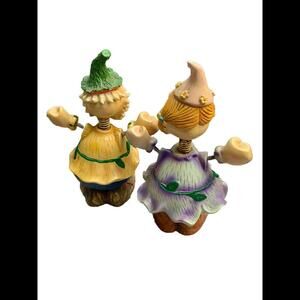 Vintage Garden Gnome Wobbly Dancing Male & Female Figurine Bobblehead Spring