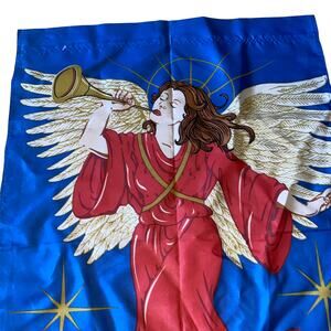 Vintage Garden Holiday Christmas Flag Angel blowing Trumpet Red Gold Blue