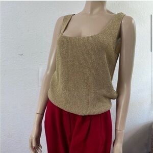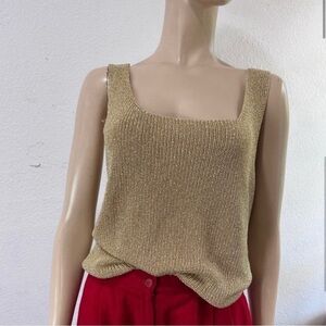 Vintage Gardy knitting sleeves blouse gold square neck size:M