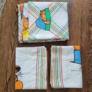 Vintage Garfield 1978 Twin Flat Sheet and Two Pillow Case Sham set