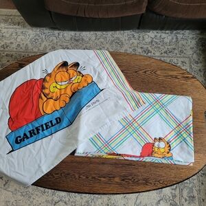Vintage Garfield Twin Flat Sheet and two matching Pillow Case Sham