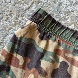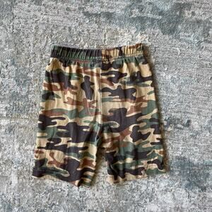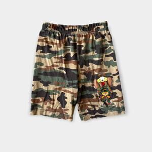 Vintage Garfield Camo Shorts. Boys size 7. Made in the USA. Circa 1994. Cozy pull on shorts in brown and green camouflage print. Features hiking Garfield with Otis on his back! Elastic in waist isn't as stretchy as it likely once was, but does still have some stretch left. See photos for measurements.