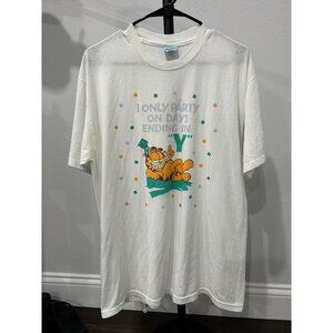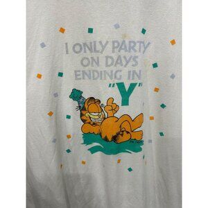 Vintage Garfield I Only Party On Days Ending In Y Crewneck T-Shirt Size XL