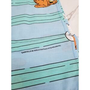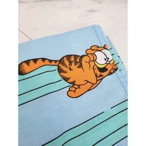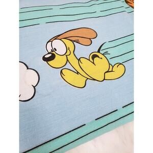 Vintage Garfield & Odie Blue Green Stripe Twin flat bed Sheet 95" x 64" Fabric