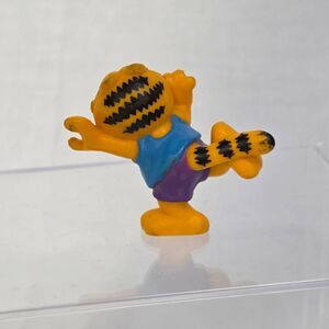 Vintage Garfield PVC figure in jogging outfit, blue tank top and purple shorts. Approx. 2" tall. Classic collectible from the 1980s.