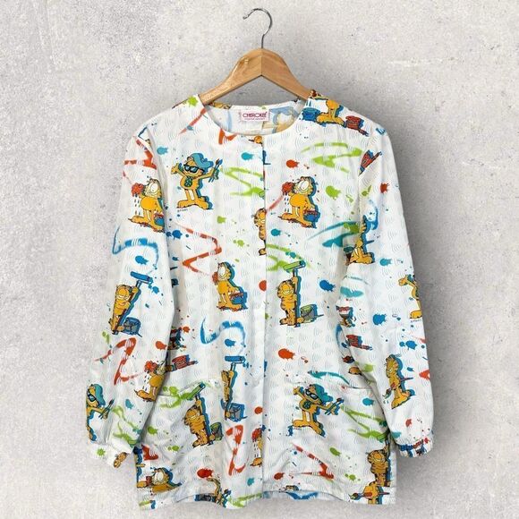 Vintage Garfield Scrub Jacket Cherokee Brand Painter Artist Cartoon Size S