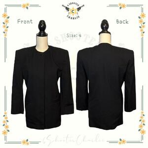 Vintage Garfinckel's Womens Black Wool Blazer Jacket Hidden Buttons Size 4 USA