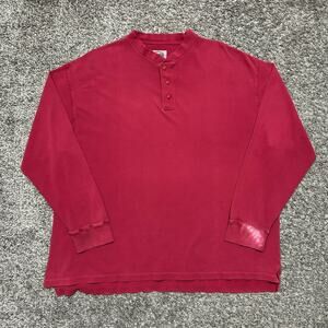 Vintage Garment Dyed Henley Shirt Cabelas Faded Cotton 90s Long Sleeve Red XL