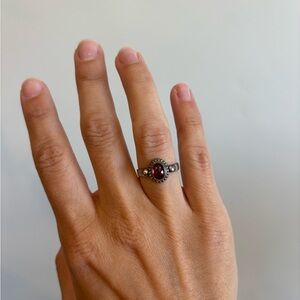Vintage Garnet 925 Sterling Silver Southwestern Ring Size 6