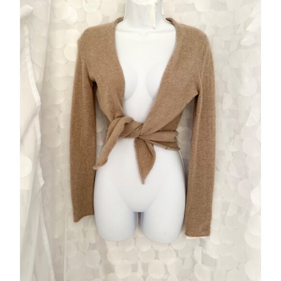 Vintage Garnet Hill XS Taupe Beige Cashmere Open Front Knot Cardigan Sweater