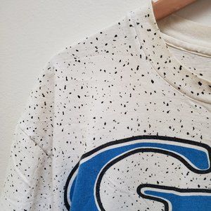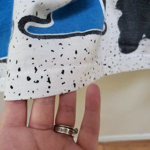 Garth Brooks ushered in a new era of country music, taking the music from its down-home audience and into arenas around the world. Get your slice of country music history with this vintage 90s Garth Brooks t-shirt! Long shirt can be worn as a sleeping tee, a dress, or over your favorite pair of rodeo jeans. Speckled backdrop to large oversized lettering and an image of Garth looking his *hottest*. Single stitch, vintage 90s Anvil.