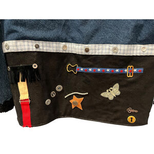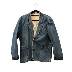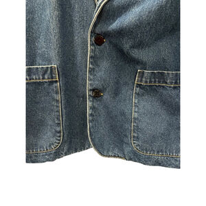 Vintage Gasoline Denim Western Jean Blazer Jacket Size Medium Trim Leather